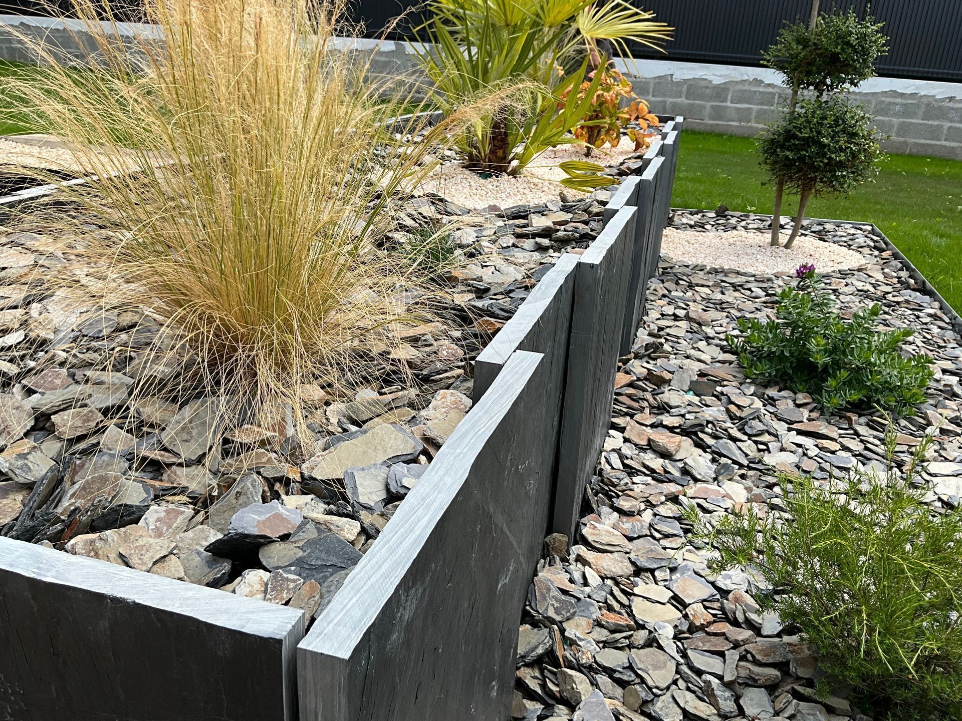- Des créations de massifs regroupant des végétaux et des minéraux